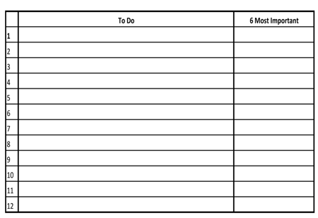 What you’re going to do is rank your tasks in order of importance 1-6.