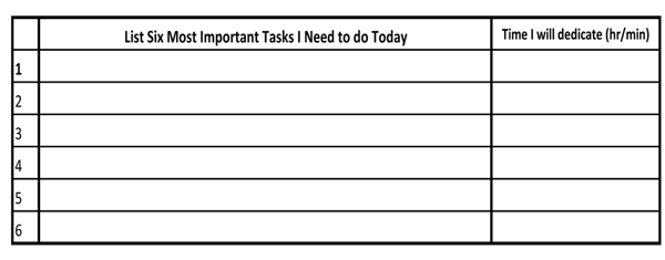 Let’s quickly recap, you’ve prepared your list of tasks you need to get done, you’ve prioritized your six most important and you’ve assigned a specific amount of time.