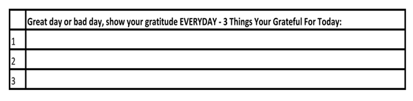 Step: 6 – Gratify – write down three things you’re grateful for everyday.
